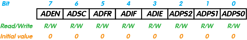Acest bit este utilizat la activarea ADC-ului. Când acest bit este setat (1-logic), ADC este activat. În caz contrar (0-logic), ADC-ul este dezactivat.