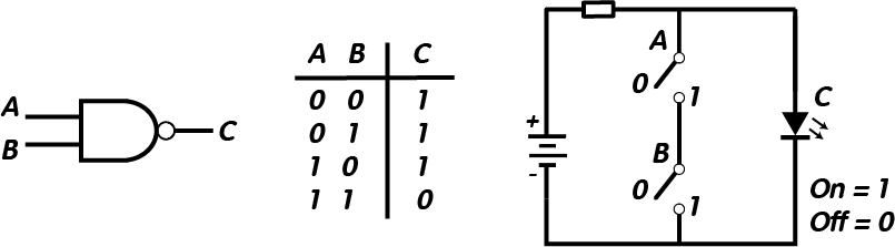 Operația NAND este formată prin compunerea operației NOT cu operația AND. În acest caz, ieșire va fi adevărată doar atunci când ambele intrări se află în 0 logic. Simbolul porții NAND este foarte asemănător cu cel al porții ȘI, singura diferență constând în adăugarea unui cerc înaintea dreptei utilizate la marcarea ieșiri din poartă.