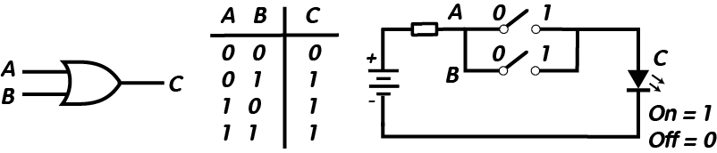 – ieșirea sa este adevărată dacă cel puțin una din intrări este adevărată;