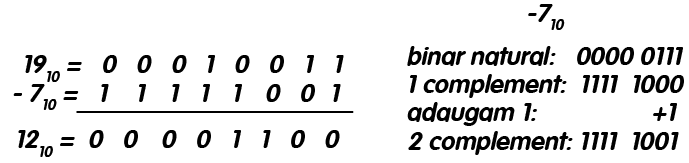 – Pasul 2: adunăm valoarea 1 la complementul față de 1 rezultat din operația anterioară, rezultând astfel valoarea complementului față de 2.