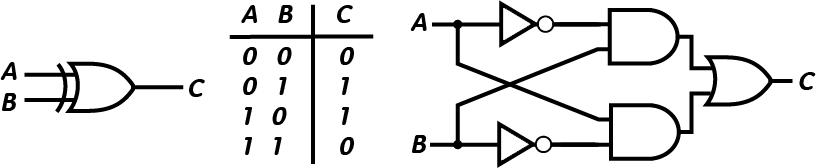 Poarta logică XOR implementează operația de disjuncție exclusivă. Ea se comportă conform tabelului de adevăr ilustrat în figura de mai jos. Ieșirea este 1 numai dacă una și numai una dintre intrările porții este 1.